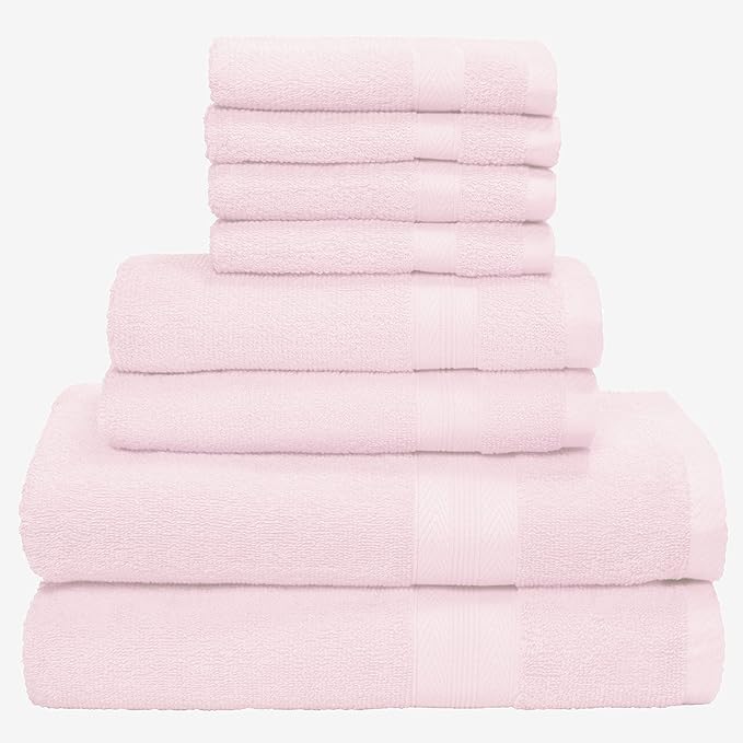 BOUTIQUO 8 Piece Towel Set 100% Ring Spun Cotton, 2 Bath Towels 27X54, 2 Hand Towels 16X28 and 4 Washcloths 13X13 - Ultra Soft Highly Absorbent Machine Washable Hotel Spa Quality - Pink