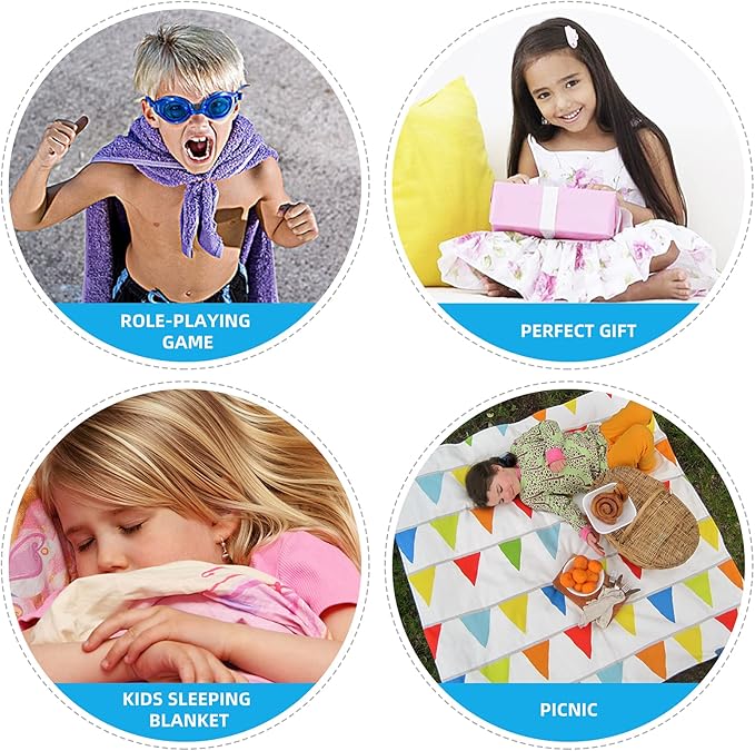 - For Indoor & Outdoor Use: Easy to open and close snaps design, let children free hands, never be worry about the beach towel slipping off anymore. After showering or swimming, it can keep the kid warm and comfy. When you have a picnic, it also can be used as a kid's sleeping bag or blanket