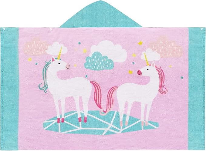 BANGSAUR Kids Beach Towels with Hood, Soft Cotton 50x30 inches Toddlers Girls Baby 3-12 Years Bath Pool Swiming Towel Wrap Cloud Unicorn