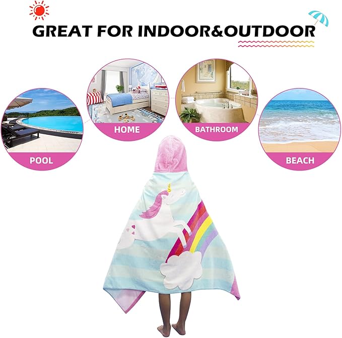 - Eye-Catching Design: We have so many cartoon animal friends for your children to choose from, such as mermaids, whales, dolphins, rainbows, unicorns, and so on, they are cute and funny. You can choose multiple bath towels for your children's role-playing. So this is the BEST GIFT for children. Put on this bath towel, children will get more friends and joy