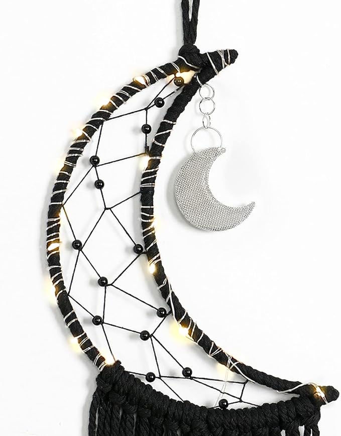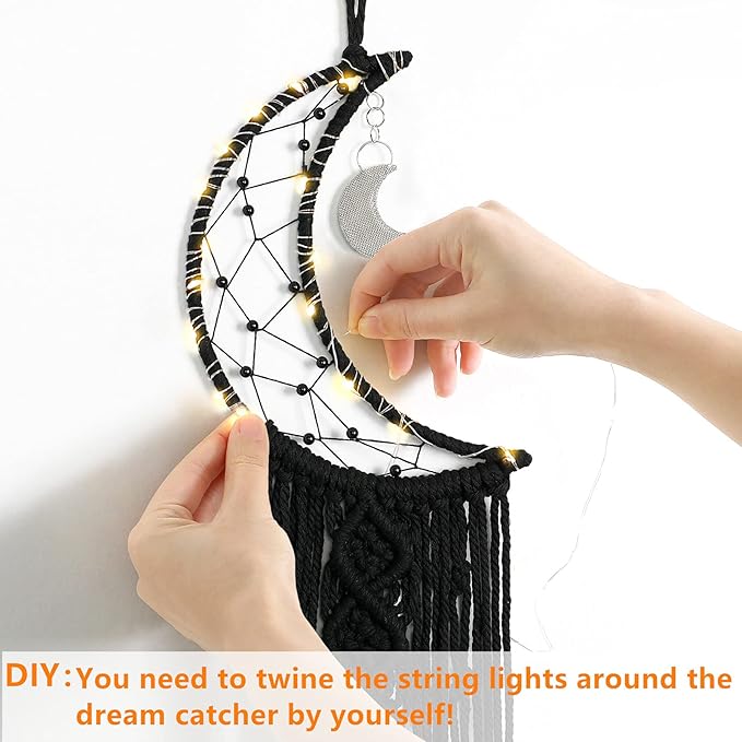 - ☆ Material: Moon Design Ornament + Cotton Cord + Black Bead+ Copper wire string lights(you need to twine the string lights by yourself)