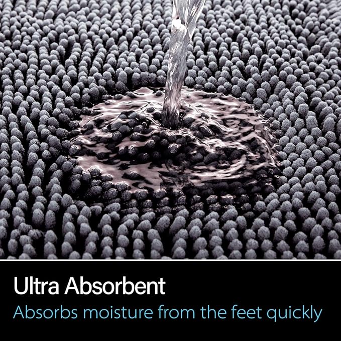 - Ultra absorbent and fast dry: Not only the bathroom rug incredibly soft, but it also absorbs water from your feet very quickly; When you step out of the shower and onto this bathroom rug, your feet will dry in seconds
