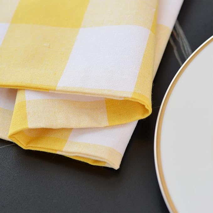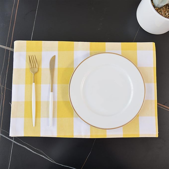 Yellow & White 2 Side Cotton Buffalo Check Placemats Set of 4 Heat Resistant Dining Table Place Mats for Kitchen Table, 12 x 18 inches