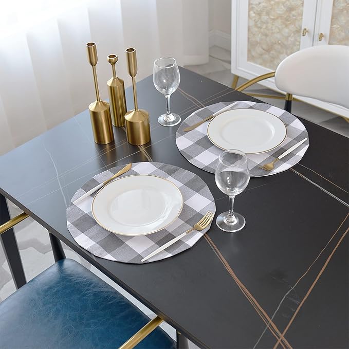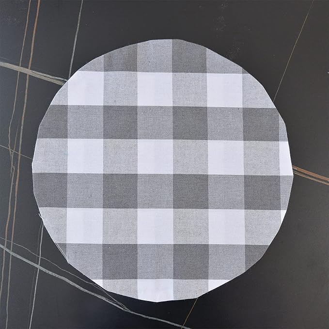 Grey & White Cotton Buffalo Check Round Placemat, Set of 4, 15 Inch eco-Friendly Fabric Handcrafted Machine Washable Indoor & Outdoor Tablemat