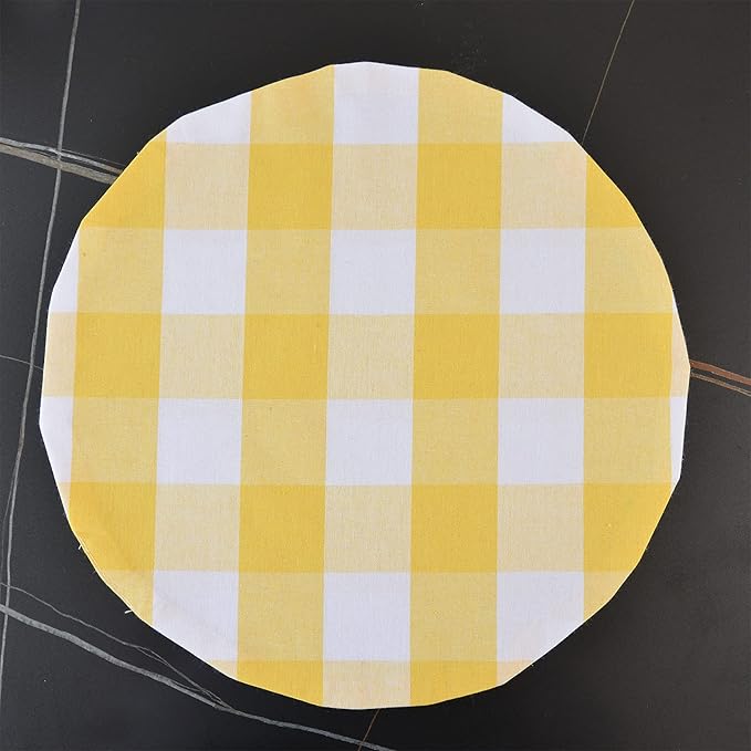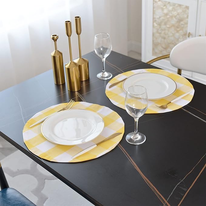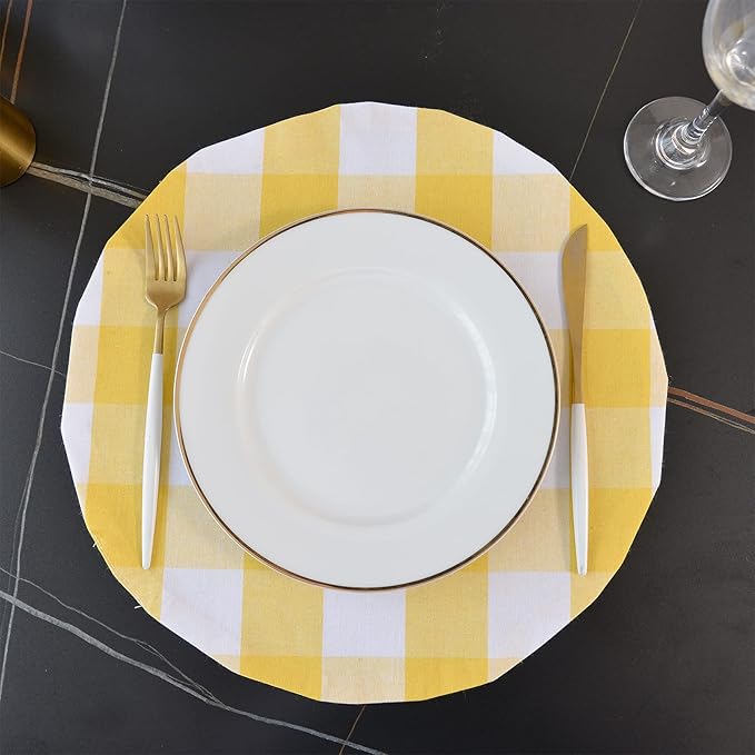 Yellow & White Cotton Buffalo Check Round Placemat, Set of 4, 15 Inch eco-Friendly Fabric Handcrafted Machine Washable Indoor & Outdoor Tablemat