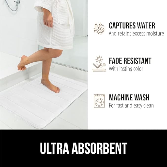 GORILLA GRIP Memory Foam Bath Mat, Soft Absorbent US Designed Bathroom Rug, Gripping Dots Machine Washable Bathmat, Cushioned Floor Mats, Shower Sink Rugs Room Décor Accessories, 60x24 White