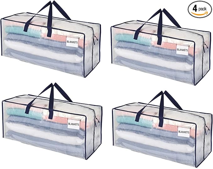 - Clear Tag Pocket & Wide Opening – Say goodbye to the frustration of searching for your belongings. Make a custom label and insert it into the clear tag pocket for easy identification of items like blankets, bedding, pillows, and clothes. Remember to use this labeling feature for organizing college dorm room essentials, moving to a new home, or storing items in the garage. The bag is equipped with dual extended zippers, creating a wide opening that allows for effortless access to stored items.