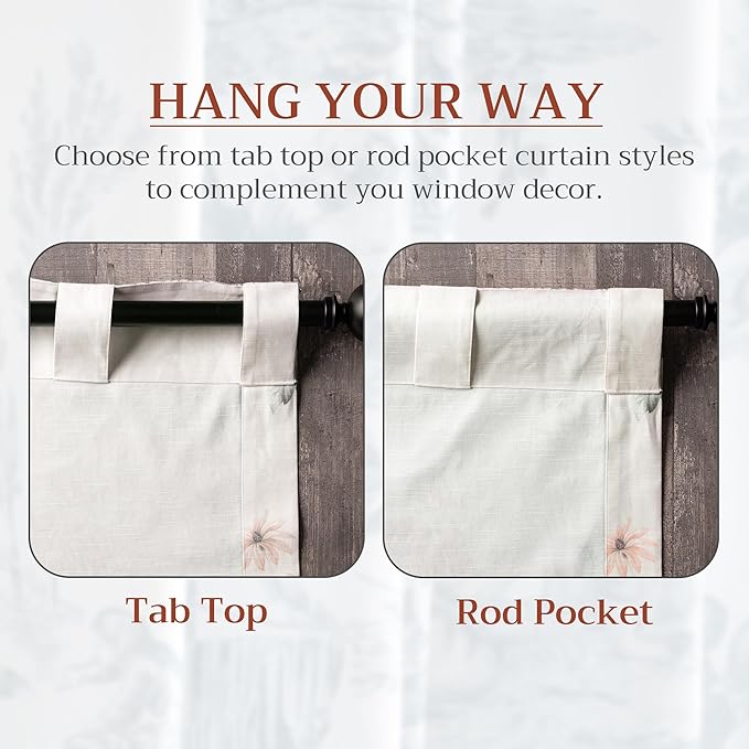- High-quality cotton: Made from 100% breathable cotton, this curtain with rod and loop pockets offers a soft, elegant touch to any space. Ideal for living room, bedroom, dining, or home office, it brings charm and character without overwhelming your décor