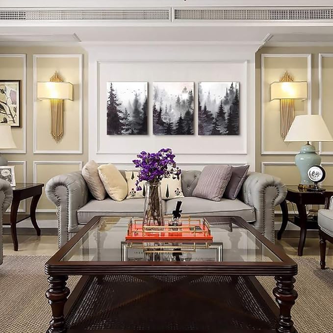 Scenery Watercolor Painting 3 Pieces Canvas Wall Art For Living Room Wall Decor For Bedroom Decorations Modern Office Home Decoration Black And White Forest Landscape Posters Canvas Prints Artwork