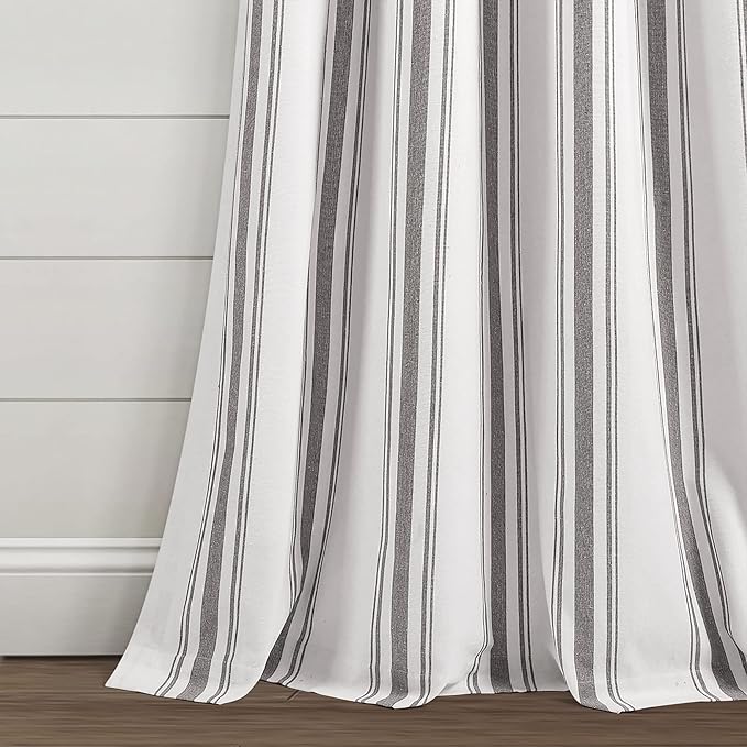Lush Decor Farmhouse Stripe Yarn Dyed Cotton Window Curtain Panel Pair, 42" W x 84" L, Gray - Classic Modern Rustic Charm - Eco Friendly Cotton Fabric