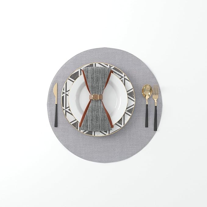 Set of 4 Round Placemat 15 Inch Soft Linen eco-Friendly Fabric Handcrafted Machine Washable Indoor & Outdoor Tablemat Grey