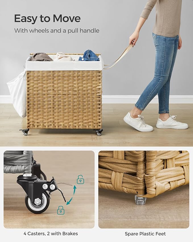 - 【EASY TO MOVE AND SECURE】This laundry hamper features a long pull handle and 4 wheels (2 with brakes) to make it a breeze to move or lock in place. Furthermore, you have the option to replace the wheels with included feet for stationary use