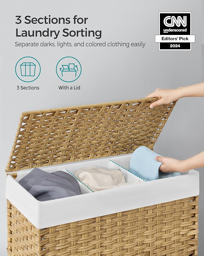 - 【CNN EDITOR'S PICK 2024】Praised for its stylish and versatile design, this laundry hamper blends seamlessly with any decor. Its generous capacity and pre-sorting sections streamline your laundry routine, making it a must-have for any home