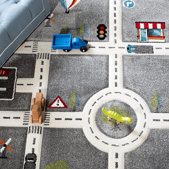 SAFAVIEH Carousel Kids Collection Runner Rug - 2' x 8', Grey & Ivory, Non-Shedding & Easy Care, Ideal for High Traffic Areas for Boys & Girls in Playroom, Nursery, Bedroom (CRK192F)