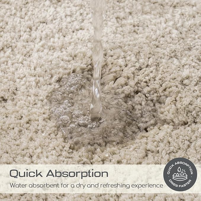 - Ultra Absorbent & Quick Dry - Experience exceptional water absorption with our premium bath rugs. The thick microfiber efficiently wicks away moisture, leaving your feet dry and comfortable in a matter of seconds. Enjoy the convenience of a fast-drying bath rug that enhances your daily routine.