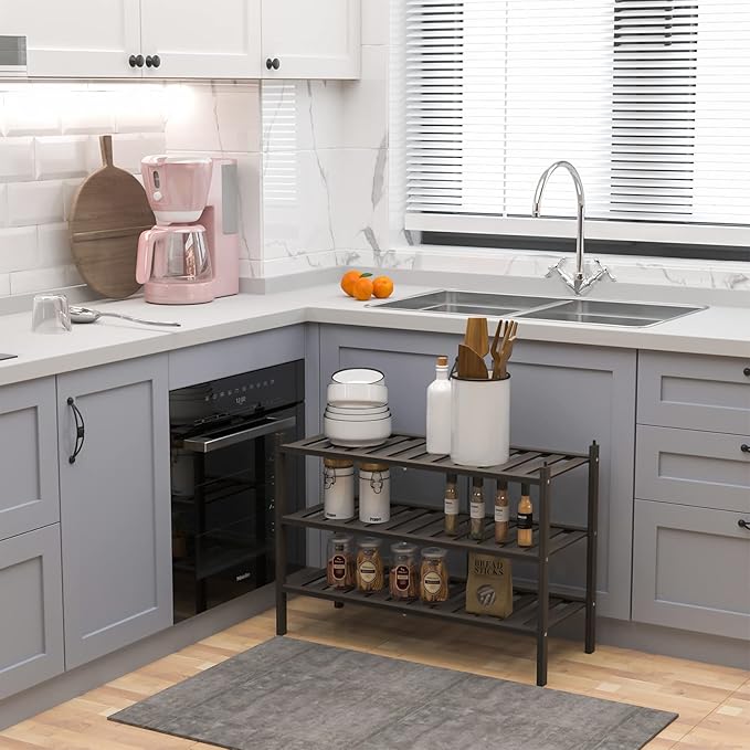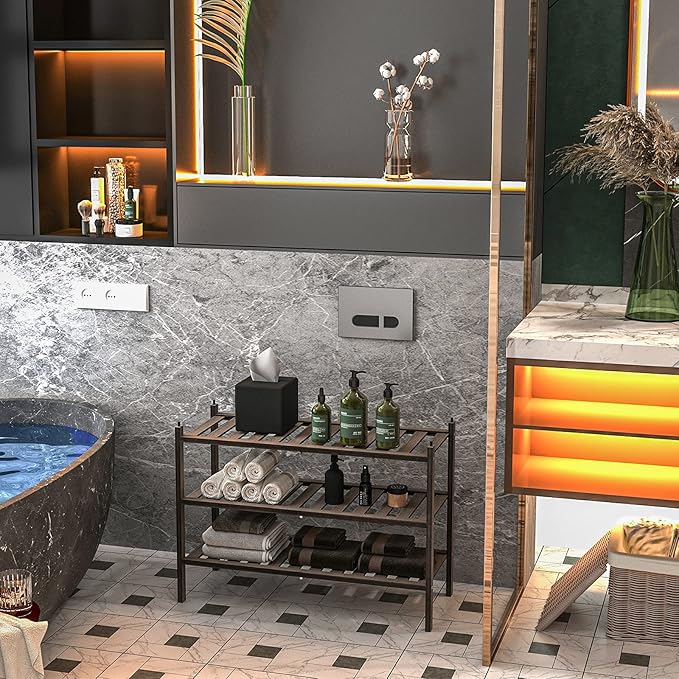 Shoe Rack, 3-Tier Bamboo Stackable Shelf Storage Organizer, Stand for Closet, Entryway, Hallway, Bathroom and Living Room(Mocha)