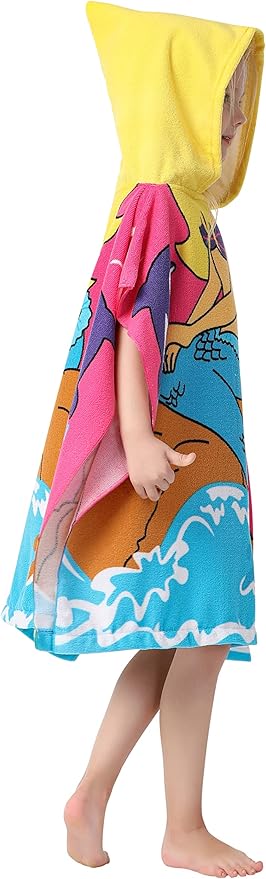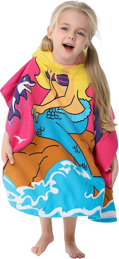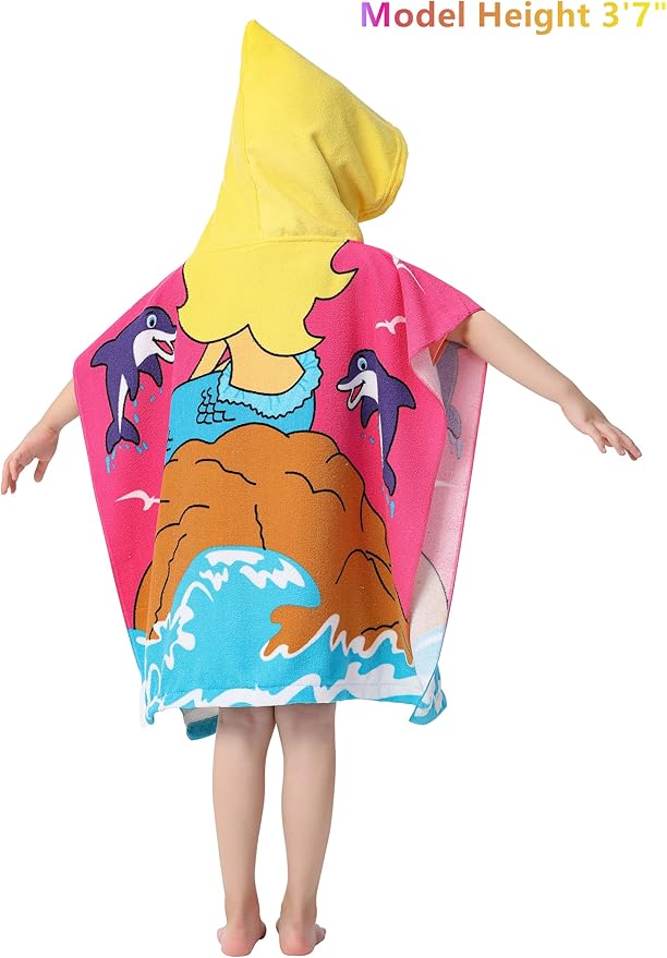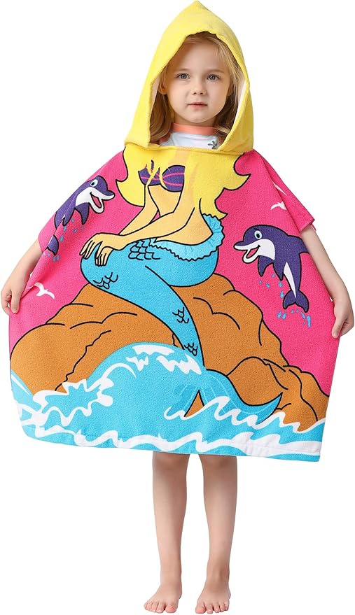 Lightweight Microfiber Hooded Beach Towel for Kids, Toddlers Bath/Pool/Swim Poncho Cover-ups Swimwear (Mermaid& Dolphin)