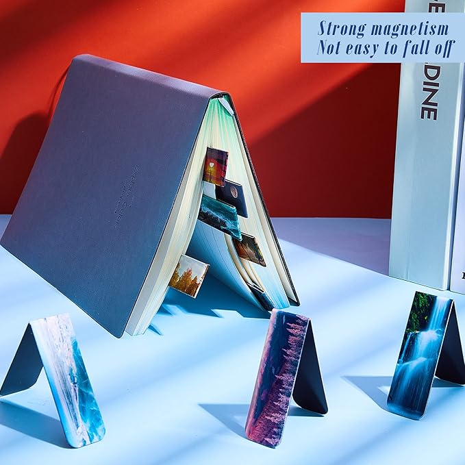 - Appropriate Size and Beautiful Scenery: each magnetic book markers measures about 6 x 2 cm/ 2.3 x 0.8 inches (L/W), proper size to stably clip the paper for you without taking too much space with delicate landscape like ocean, falls and more, giving you good use feeling
