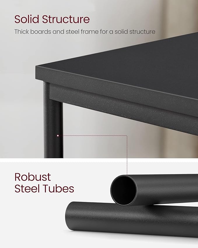 - [Well-Built and Well-Balanced] With particleboard braced by steel side frames, this table is solid and stable, capable of holding 44 lb of items on each tier. Adjustable feet preventing wobbling on uneven floors is an extra factor for its stability