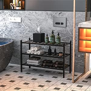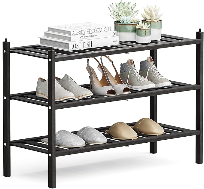 Shoe Rack, 3-Tier Bamboo Stackable Shelf Storage Organizer, Stand for Closet, Entryway, Hallway, Bathroom and Living Room(Black)