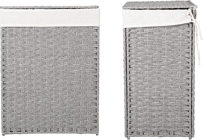 - HANDWOVEN CRAFTSMANSHIP: Expertly handwoven from synthetic PE rattan around a durable iron frame, this laundry hamper combines style and utility. Each piece is uniquely crafted, adding a decorative touch to any room while ensuring robust and reliable use.