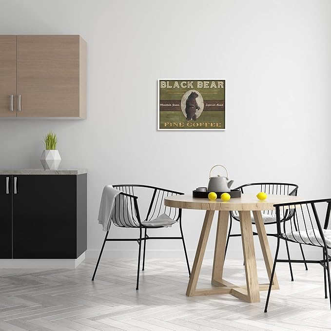 Stupell Industries Black Bear Fine Coffee Rustic Kitchen Mountain Animal, Designed by June Erica Vess White Framed Wall Art, 16 x 20, Green