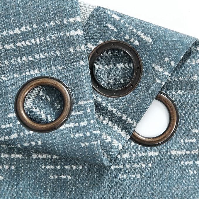 jinchan Boho Curtainsfor Living Room Blue Farmhouse Boho Curtains 84 Inches Long Geometric Striped Mudcloth Light Filtering Bedroom Window Grommet Curtains 2 Panels Blue on Beige
