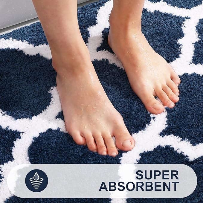 OLANLY Bathroom Rugs 30x20, Soft and Absorbent Microfiber Bath Rugs, Non-Slip Shaggy Shower Carpet, Machine Wash Dry, Bath Mats for Bathroom Floor, Tub and Shower, Navy