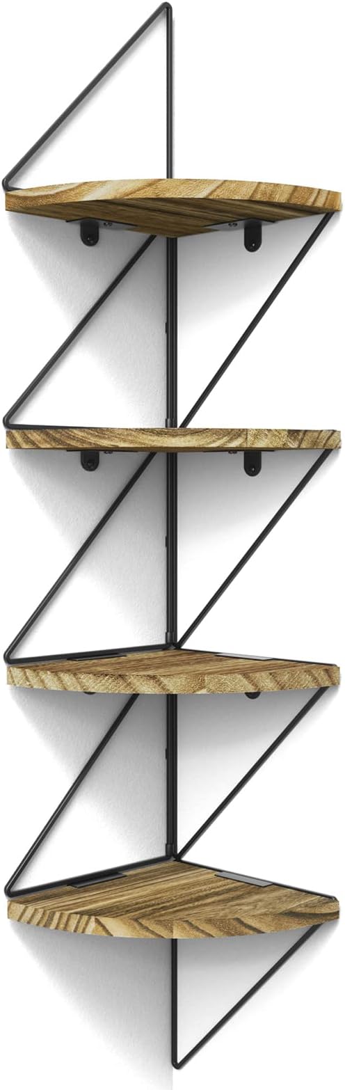 SZQINJI Wall Mount Corner Shelf 4-Tier Rustic Wood Floating Shelves Wall Hanging Shelves for Bathroom Bedroom Living Room Kitchen Office and More Carbonized Black