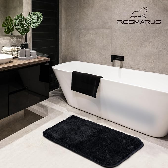 ROSMARUS Shaggy Bath Rugs Non Slip 24" X 36", Water Absorbent Bath Mat, Soft Shower Mat for Floor & Tub, Fluffy Plush Bathroom Rugs Machine Washable, Black