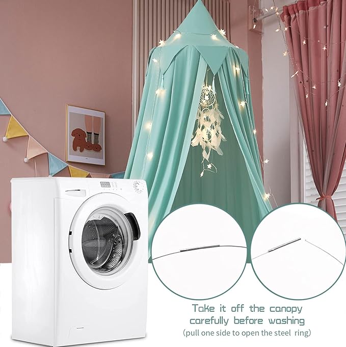 - Large Size: Compared with others,our canopy is large to meet your need. Top diameter--25.6"(65cm),bottom diameter--157.5"(400cm);total height--98.4"(250cm).Height can be adjusted according to your preferences,suitable for many high ceiling.Perfect bed canopy fit for kids ,cribs, children's bed,toddler bed or twin,full,queen bed, features an opening for easy entrance.