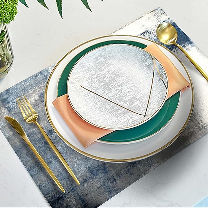 Mcalk Dusty Blue Table Runner and Placemats Set of 6 Pieces, Pink Flower Placemats Modern Art,Abstract Art Cloth Place Mats Indoor for Kitchen,Washable Placemats Linen Material for Dining Table
