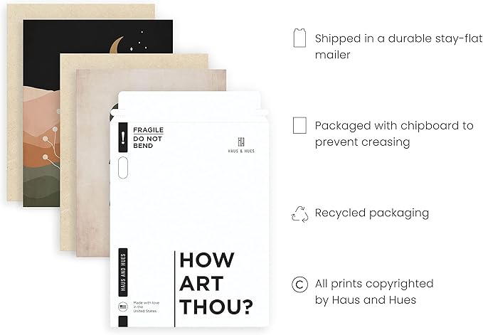 - ORDER W/ CONFIDENCE, EXPECT HIGH QUALITY: We have absolute faith in the quality of our boho posters and prints. Our in-house team handles your boho art prints with utmost care to ensure that your art prints meet every expectation from designing, printing, packaging, and shipping. If there’s any problem with your order, simply contact us, and we will refund you or offer you a replacement. So, either you'll love your new boho art wall décor, or it's free