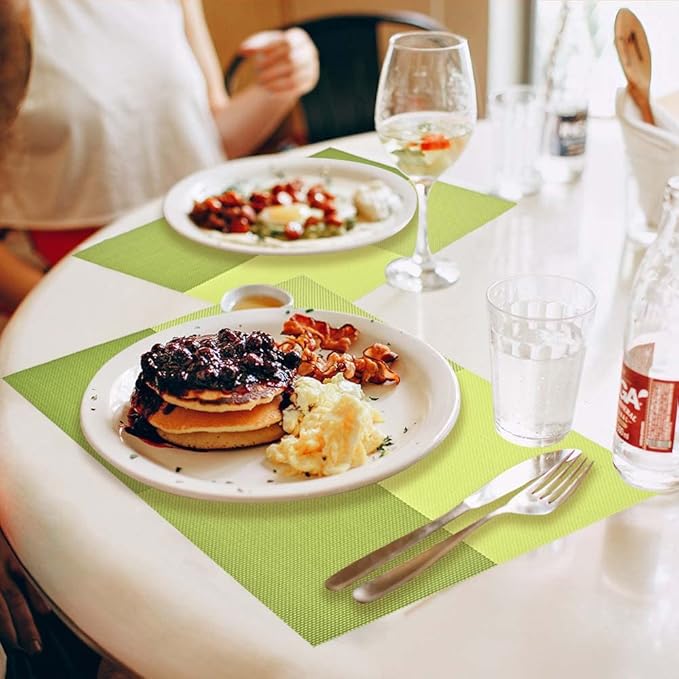 GIVERARE Placemats Set of 4, Heat-Resistant Woven Vinyl Placemat, Non-Slip Washable PVC Table Mat, Easy to Clean Premium Plastic Mats for Dining, Kitchen Table (Green)