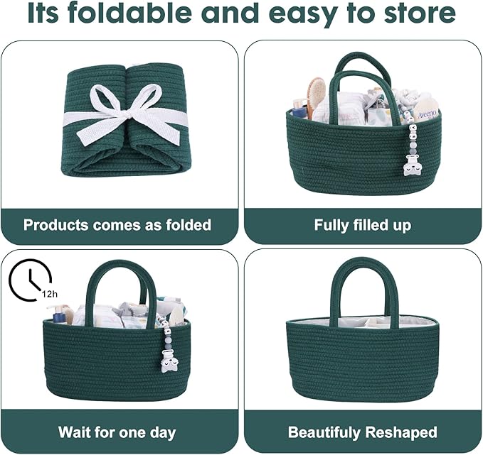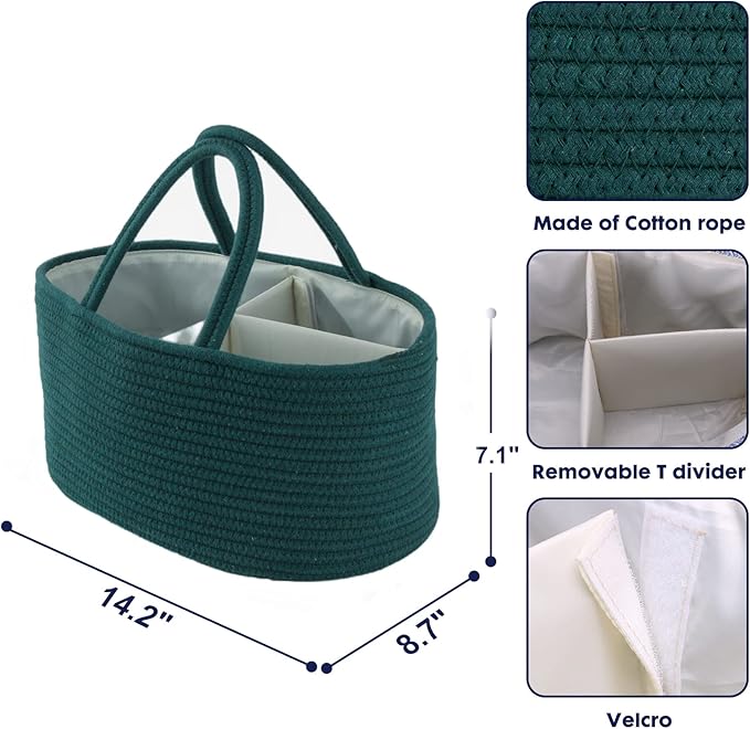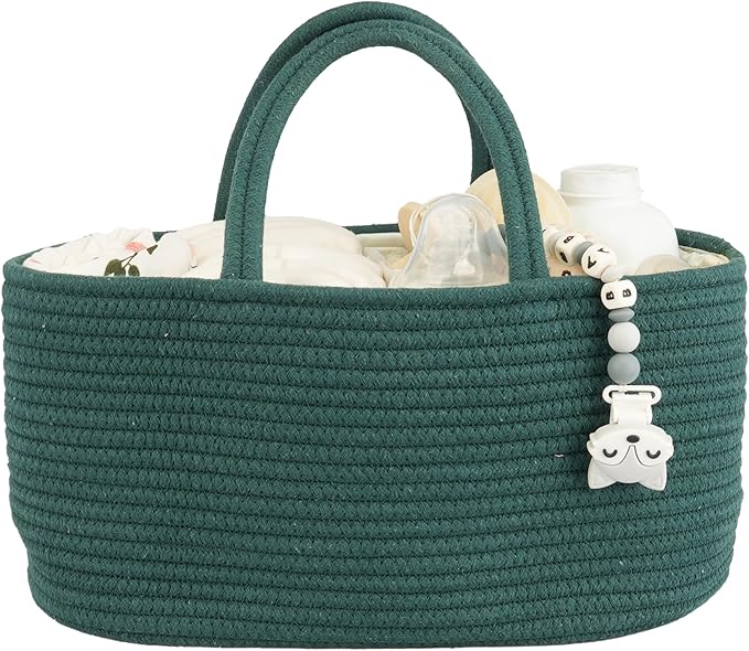 Baby Diaper Caddy Organizer for Girl Boy Rope Nursery Storage Bin Basket Portable Holder Tote Bag for Changing Table Car Travel Baby Shower Gifts Newborn Essentials Registry Must Have Items Dark Green