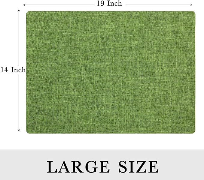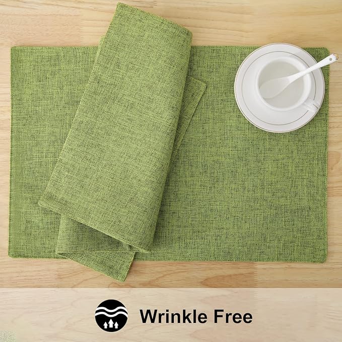 homing Grass Green Cloth Placemats for Dining Table Set of 6 – Cotton Linen Blend Washable Farmhouse Kitchen Mats for Indoors & Outdoors - Easy to Clean 13 x 19 Inch