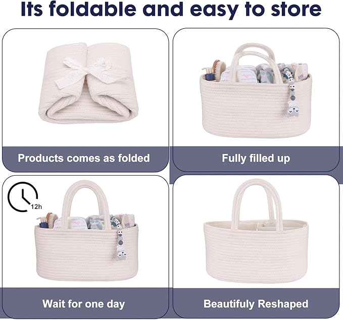 - Great Baby Gifts: This unisex diaper basket organizer is a perfect Newborn gifts as it Looks perfect on dresser top, next to diaper pail, bedside, crib and etc. This diaper basket caddy is not only beautiful but also practical. Could fill it with diapers, wipes or anything else new baby stuff as gift basket. Baby caddy is one of newborn must have items.
