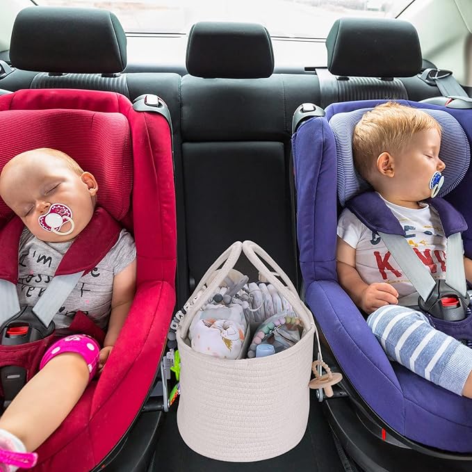 Baby Diaper Caddy Organizer for Girl Boy Cotton Rope Nursery Storage Bin Basket Portable Holder Tote Bag for Changing Table Car Travel Baby Shower Gifts Newborn Essentials Registry Must Haves White