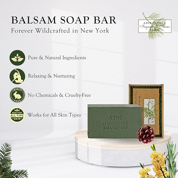 - 【Embrace Natural Purity】Handmade with olive, sunflower, and coconut saponified oils, our ADK Balsam Soap Bar is crafted from all-natural, plant-based ingredients. This gentle, vegan soap provides a pure cleansing experience for men, women, and babies.