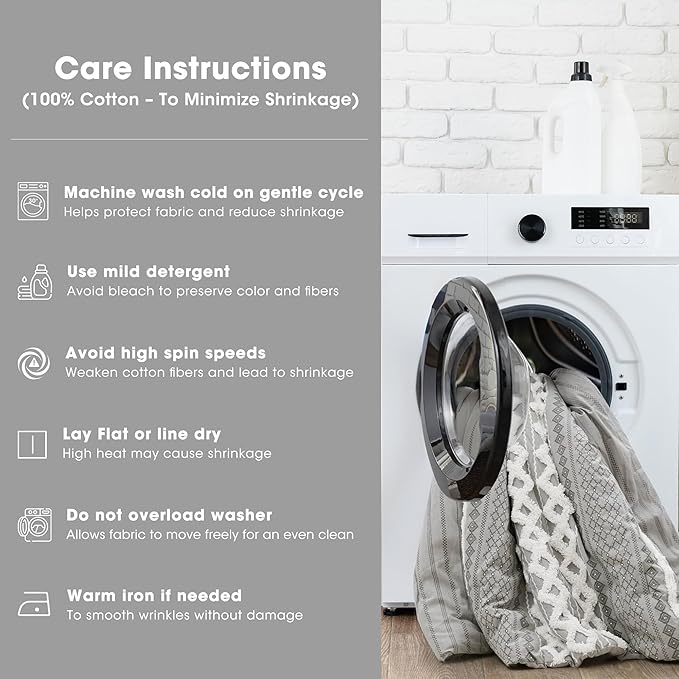 - CARE: Conveniently machine washable. Note that cotton is a natural fiber and may shrink. To minimize shrinkage, machine wash cold and tumble dry on low heat or air dry