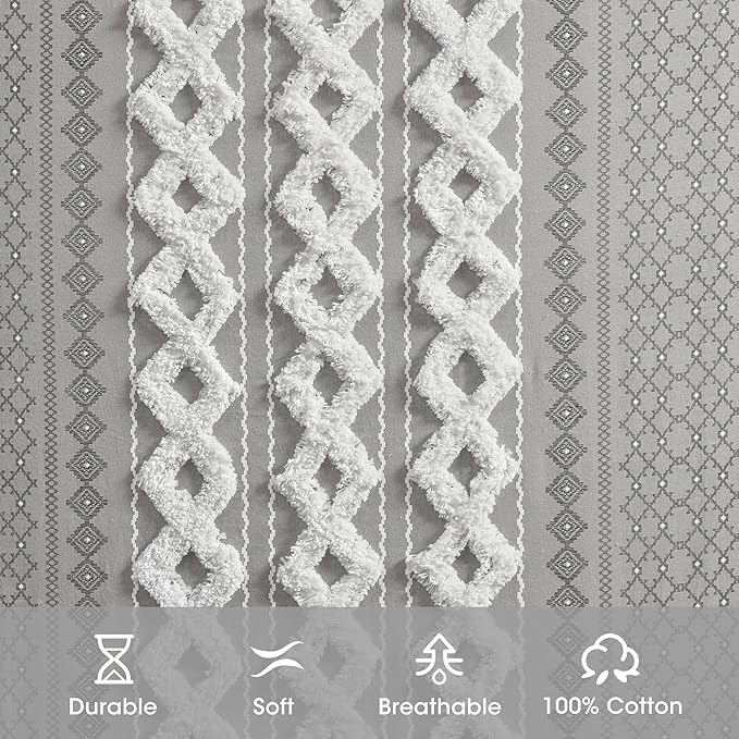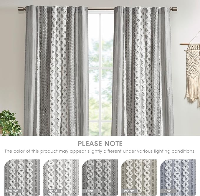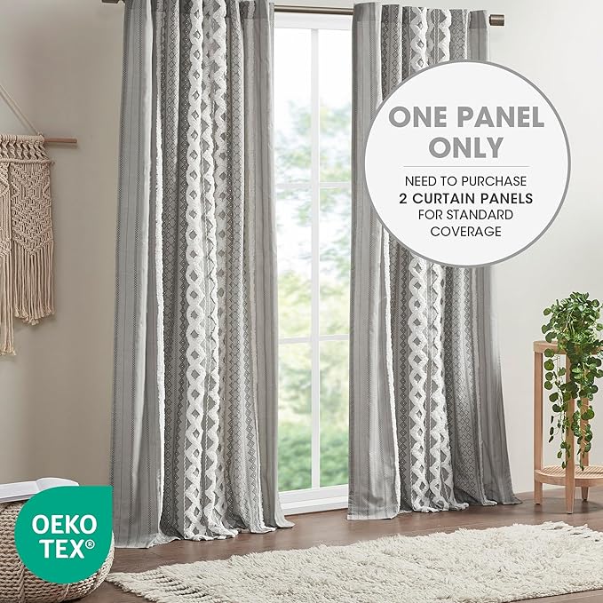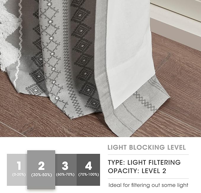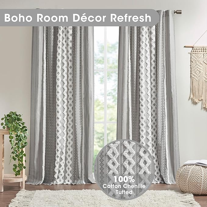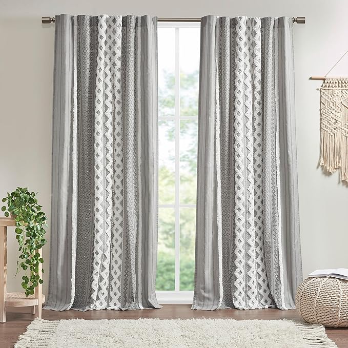 - FARMHOUSE DÉCOR: This gray window curtain features a geometric print with a tufted chenille stripe trim, for a textured artisanal look and feel. It's a perfect modern farmhouse curtains for livingroom décor
