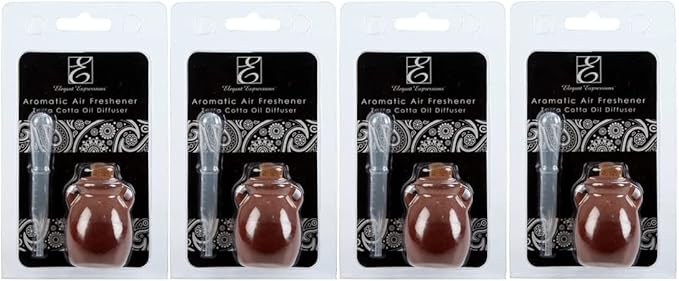 Hosley Set of 4 Terracotta Diffuser Bottles, 2.17 Inch High, Brown, Ideal for Essential Oils, Aromatherapy, Spa, Meditation