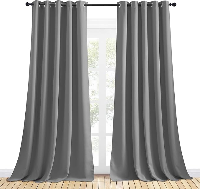 NICETOWN Silver Grey Blackout Curtain Panels for Bedroom, Thermal Insulated Grommet Top Blackout Draperies and Drapes for Basement (2 Panels, W70 x L95-inch)