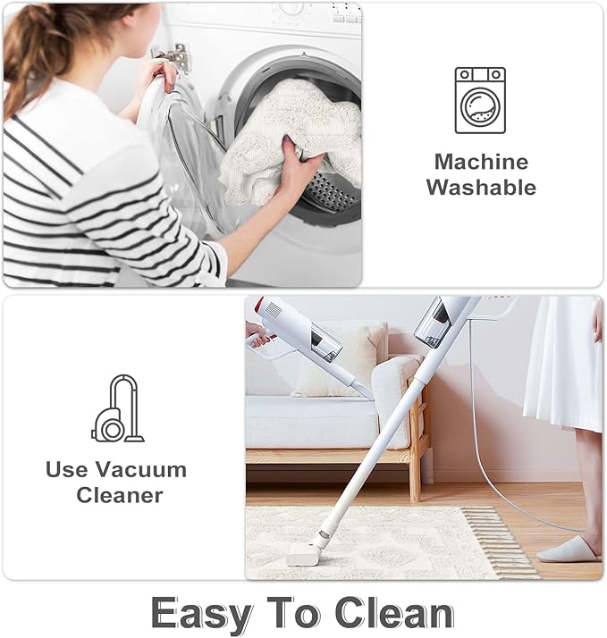 - Easy to Clean Washable Rug: The best choice for cotton area rug maintenance would be using upright or canister vacuums, to prevent dust and crumbs. Allows to machine wash. Wash in cold water with mild detergent. Tumble dry on low heat or lay to air dry