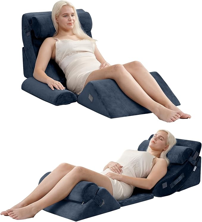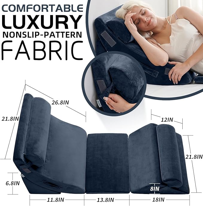 Qirroboni 6PCS Orthopedic Bed Wedge Pillow Set, Adjustable Pillows for Neck, Back and Leg Pain Relief Comfortable & Post Surgery Foam - Heartburn, Anti Snoring, Acid Reflux & GERD Sleeping Indigo