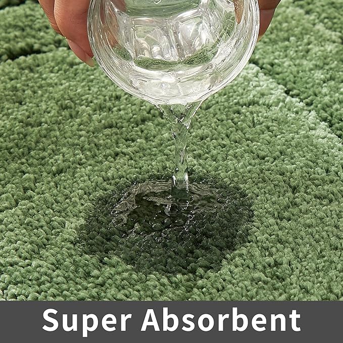 COSY HOMEER Extra Thick Bath Linen Sets Rugs for Bathroom - Anti-Slip Bath Mats Soft Plush 100% Strong Polyester Mat Living Room Bedroom Water Absorbent(Green,24x48 - Inches)