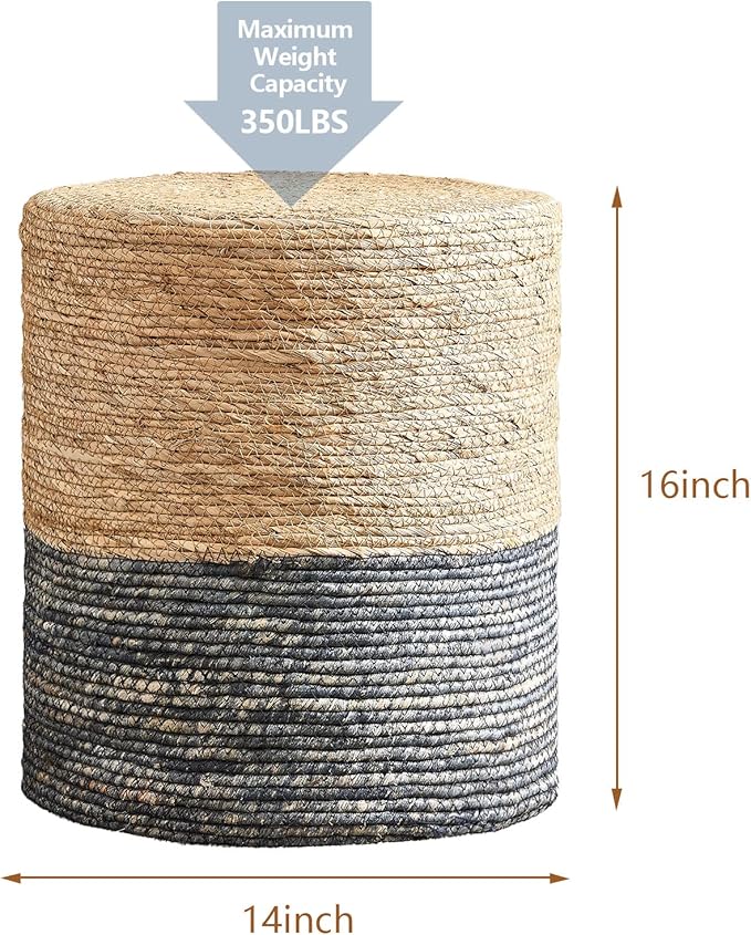 - 100% Handmade Cover: Pouf Ottoman is made of sustainable, and durable natural seaweed & corn husk braid.High-end sewing technology makes natural materials more tight and not easy to open
