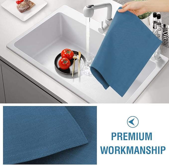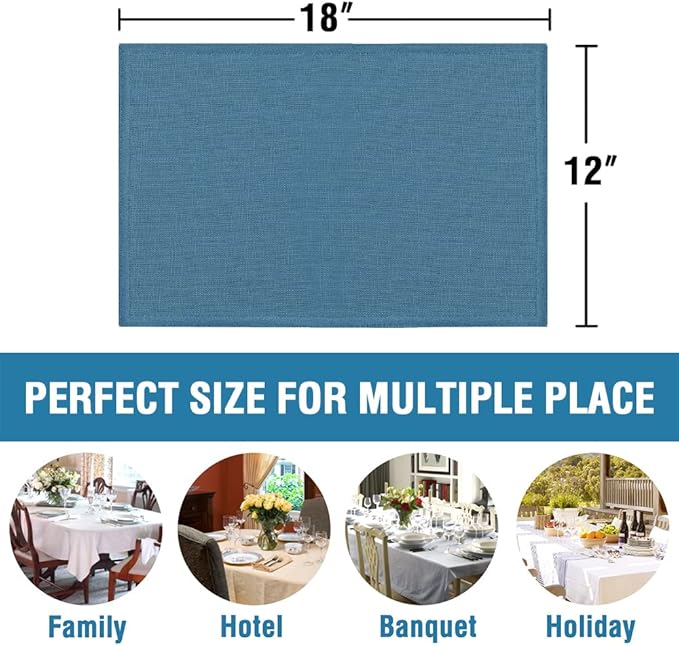 H.VERSAILTEX Linen Placemats Set of 4 Premium Solid Table Mats for Dining Table Spill-Proof Waterproof Heat-Resistant Kitchen Mats Washable, 12x18 inches, Ink Blue