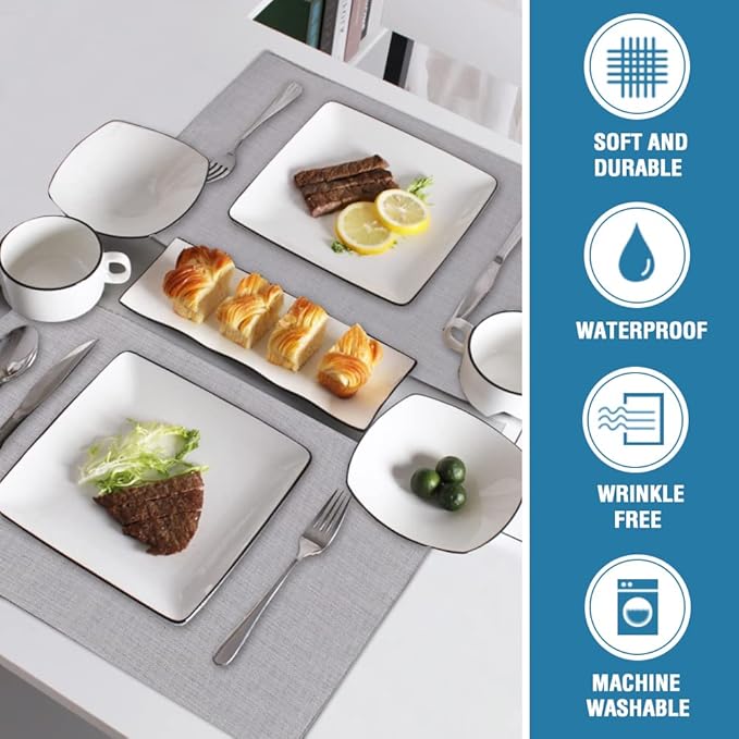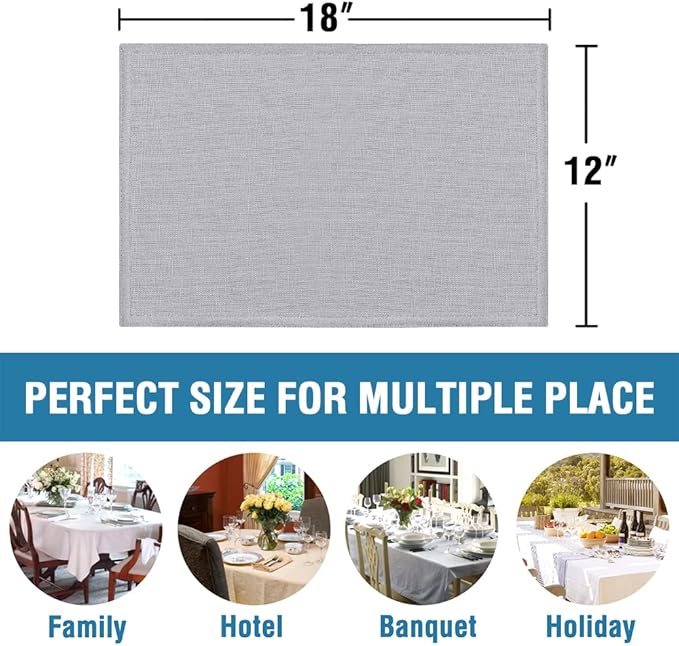 H.VERSAILTEX Linen Placemats Set of 8 Premium Solid Table Mats for Dining Table Spill-Proof Waterproof Heat-Resistant Kitchen Mats Washable, 12x18 inches, Grey