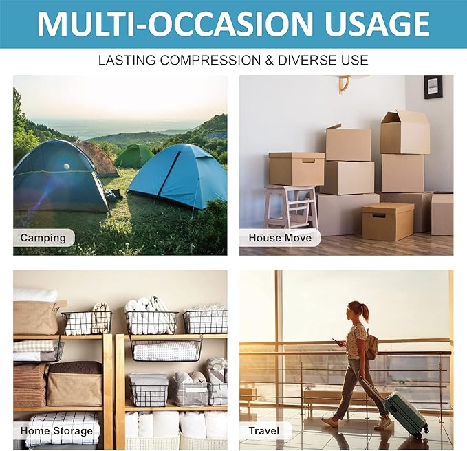 - Lasting effective protection: the space bags use robust double-zip sealer & triple sealed turbo valve to vacuum the air out. Simply vacuum out the air and the vacuum bags will remain compressed & fresh.